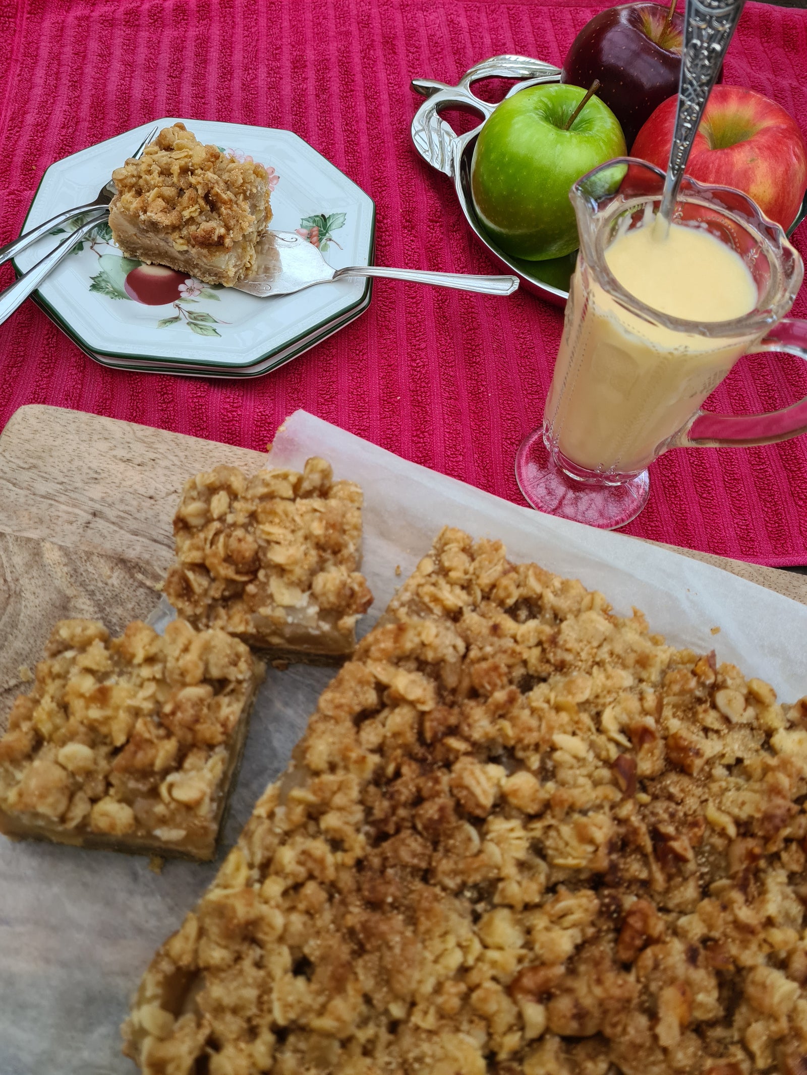 Apple, Caramel & Oats - a perfect flavour combo and made into an easy chewy, crumbly, delicious slice. Those winter flavours we come back to every winter. Apple Pie flavours - but it's much easier than a pie!