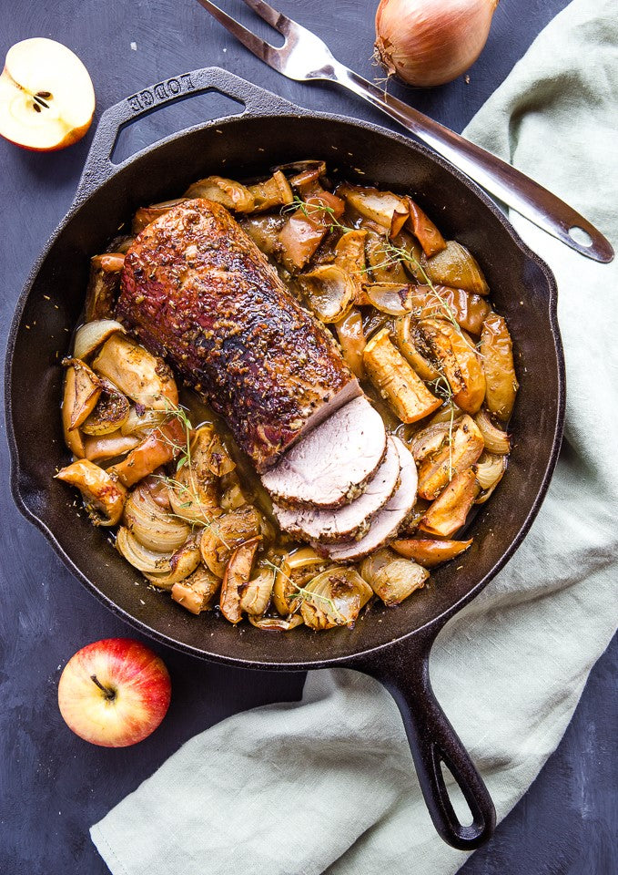 Add apples and onions. Transfer the skillet to the oven and roast the pork for 20-25 minutes, occasionally stirring the apple and onion mixture and turning the pork.